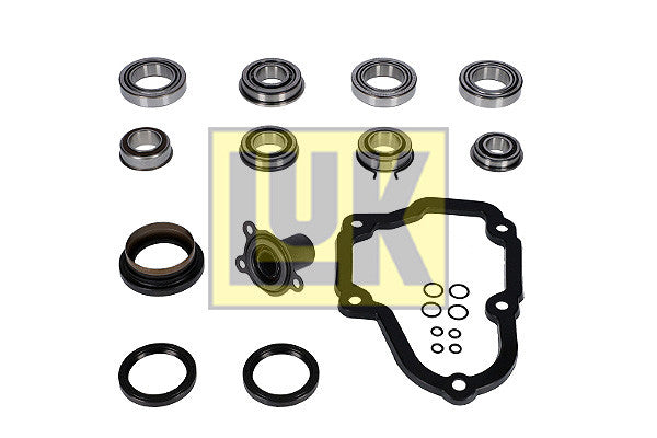 Genuine LUK bearing set for 0A4 and 02R 5-speed manual transmissions (VW). Scope of delivery as shown in the product images.